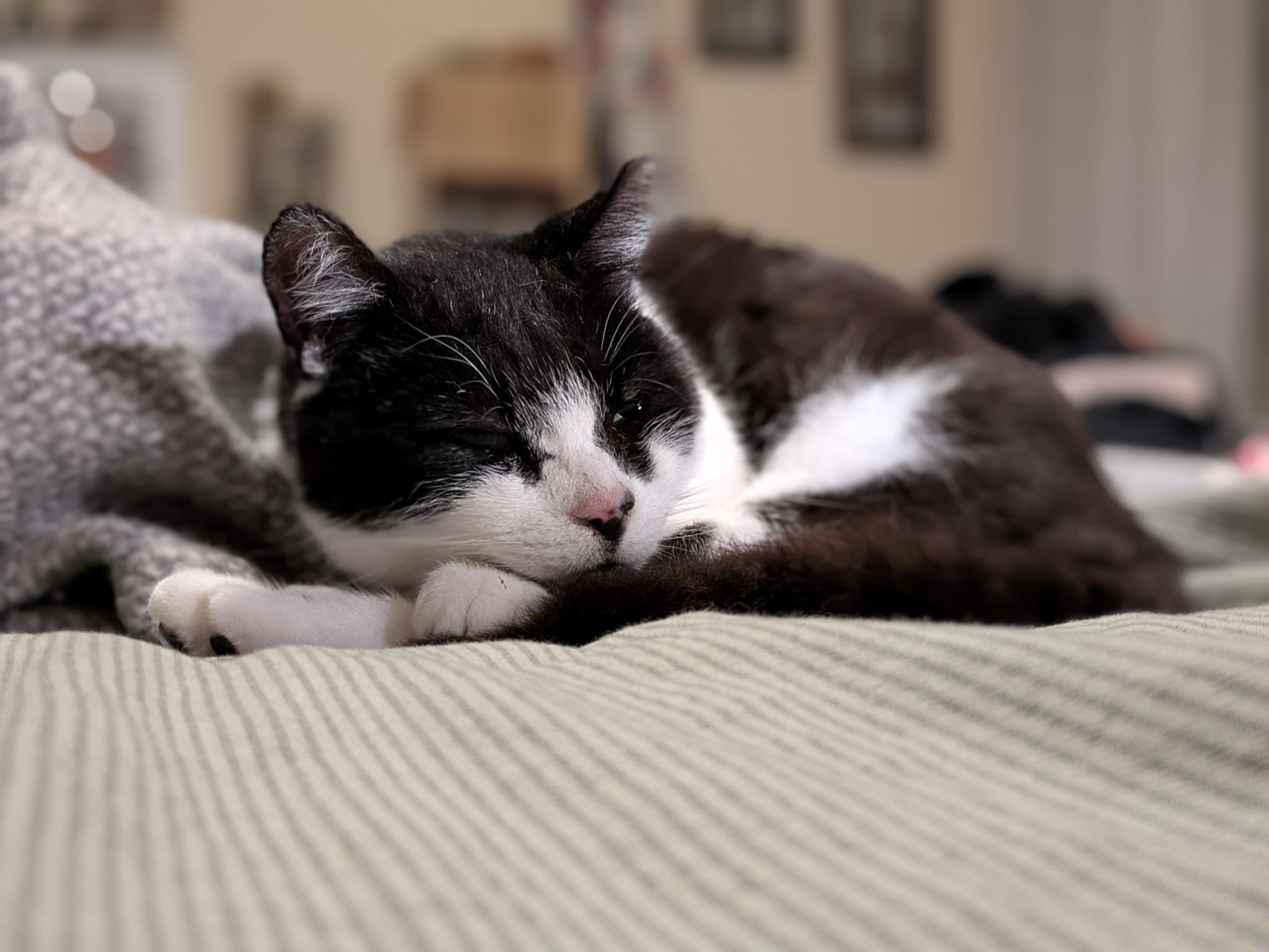 Buster slinks by, reeking of vinegar.
